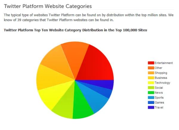 This information lets you find out the general target market of a technology, so for example you can find out what the biggest category for users of Twitter API is at the moment (it's entertainment). Or, who is the biggest segment of Optimizely Analytics (it's shopping and business) and who is the biggest customer base of Amazon CloudFront CDN technology (it's shops again).