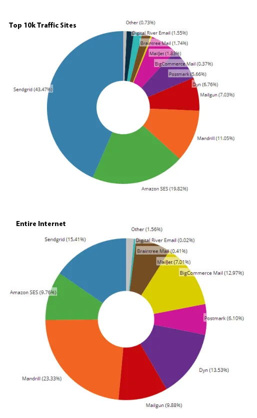 SendGrid Transactional Email Share Top 10k Sites vs. Entire InternetIt looks to have been a very good year for SendGrid and the trends suggest that the transactional email is a growing market. SendGrid are positioned very well with some high profile users and look set to have another year of steady but significant growth.