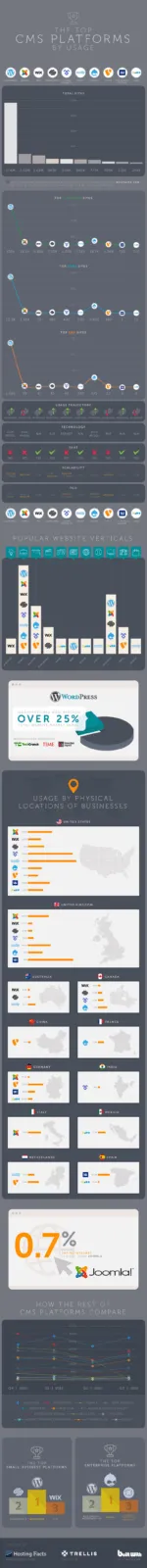 HostingFacts / Trellis recently did a fantastic data visualization / info graphic helped along with BuiltWith data, click for the full thing and full credit to them for making this!