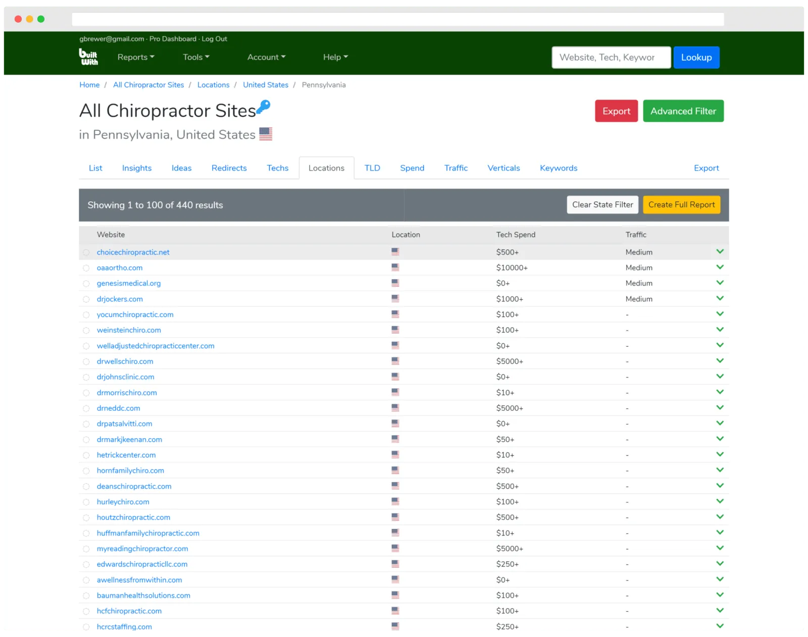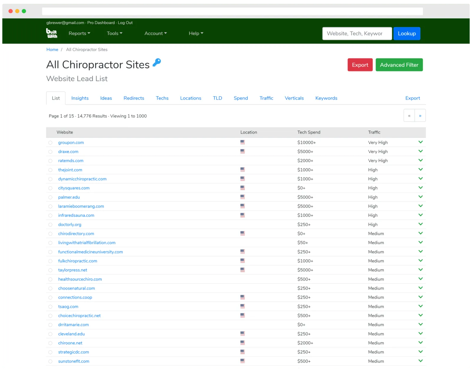 So from that we've got a very well defined starting point for GetLeadForms to use BuiltWith Pro; they want Chiropractors that are looking to get more leads.