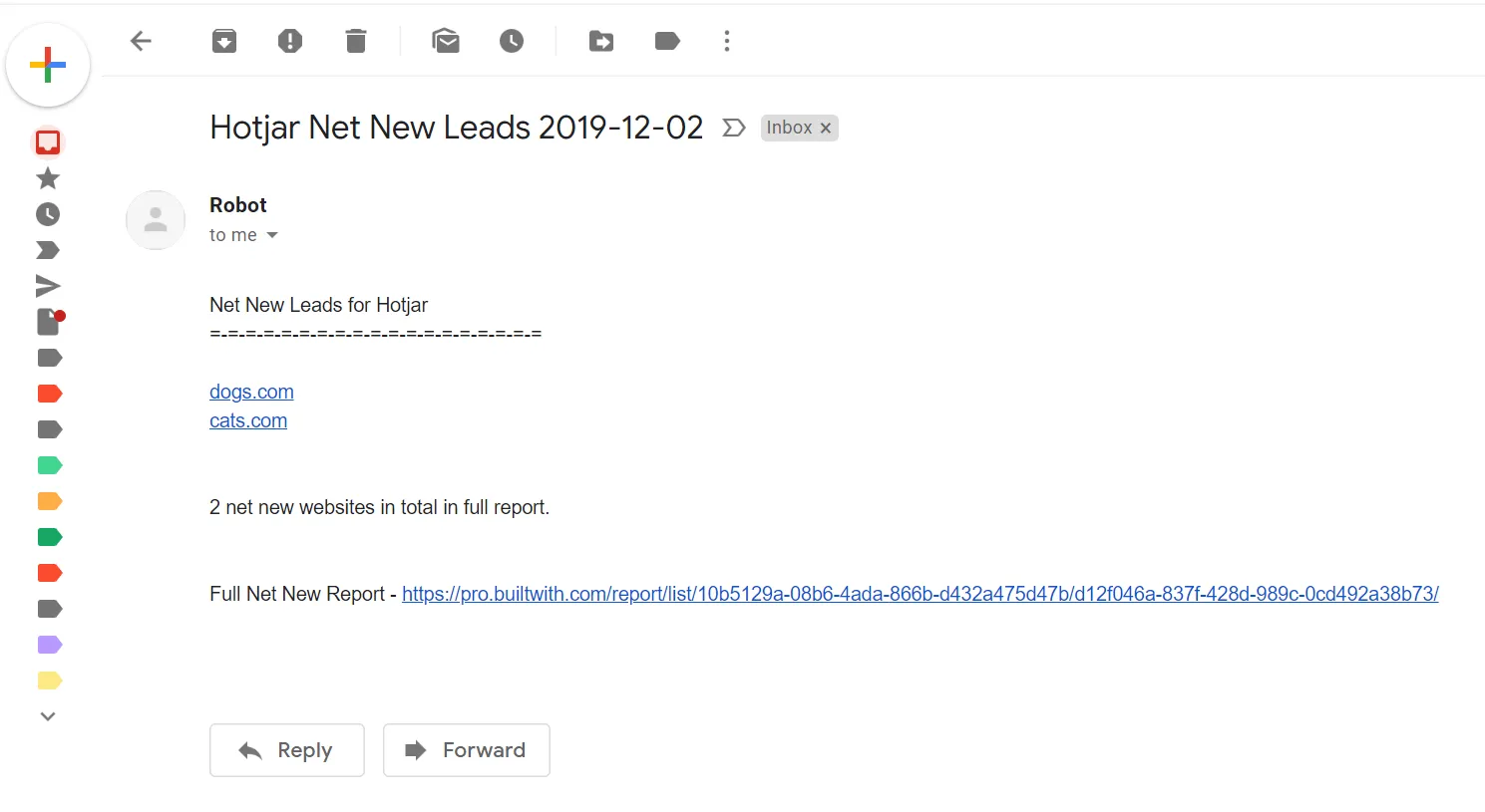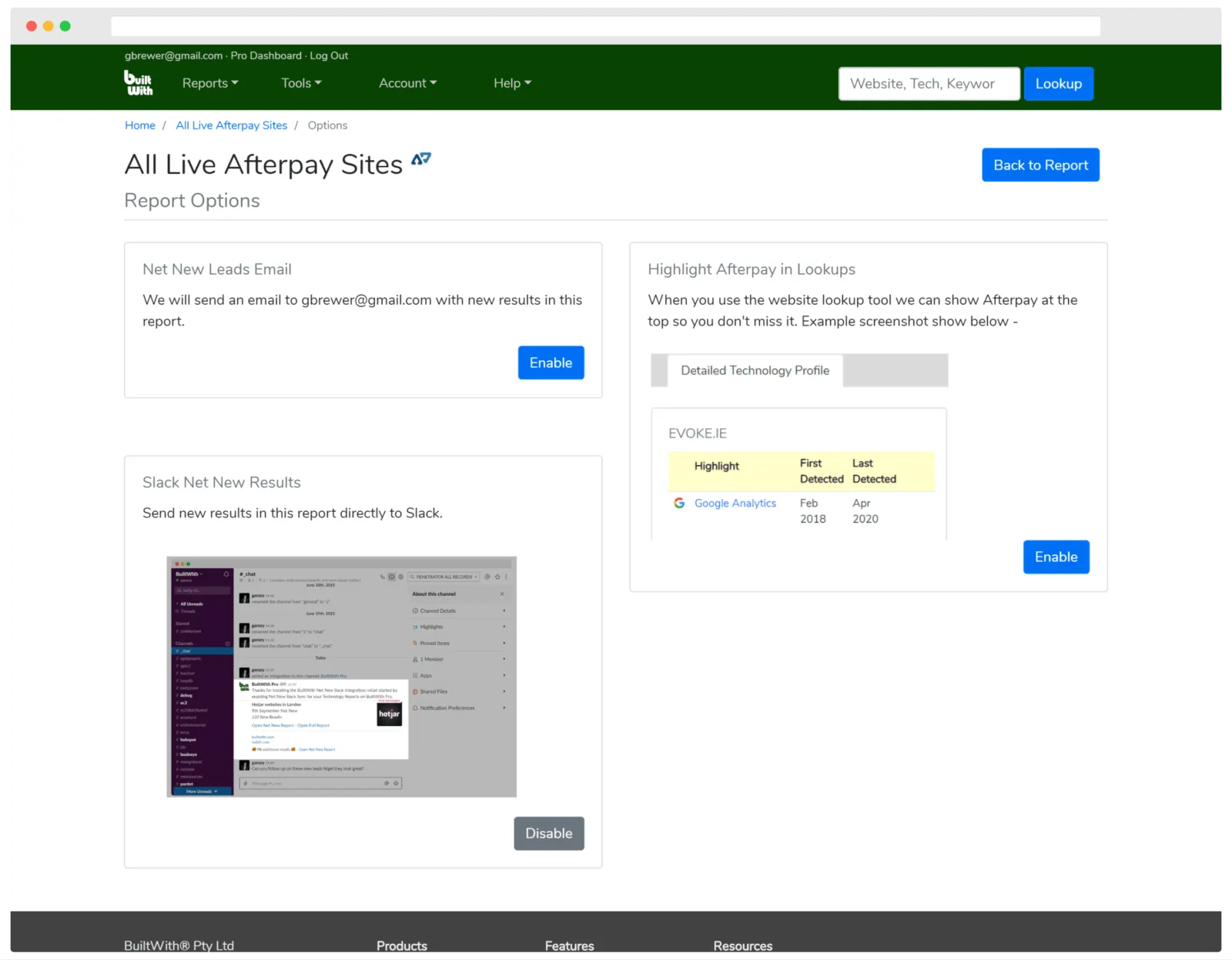 We've just added a new feature to BuiltWith Technology Reports - you can now get 'Net New' leads from reports directly sent to you by email. All you have to do is click the 'Enable Net New Email' on Technology reports -