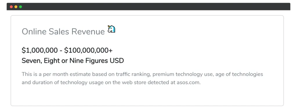 We calculate this by looking at how long the eCommerce site has been around, if it's using premium technologies, if it's a high traffic site.